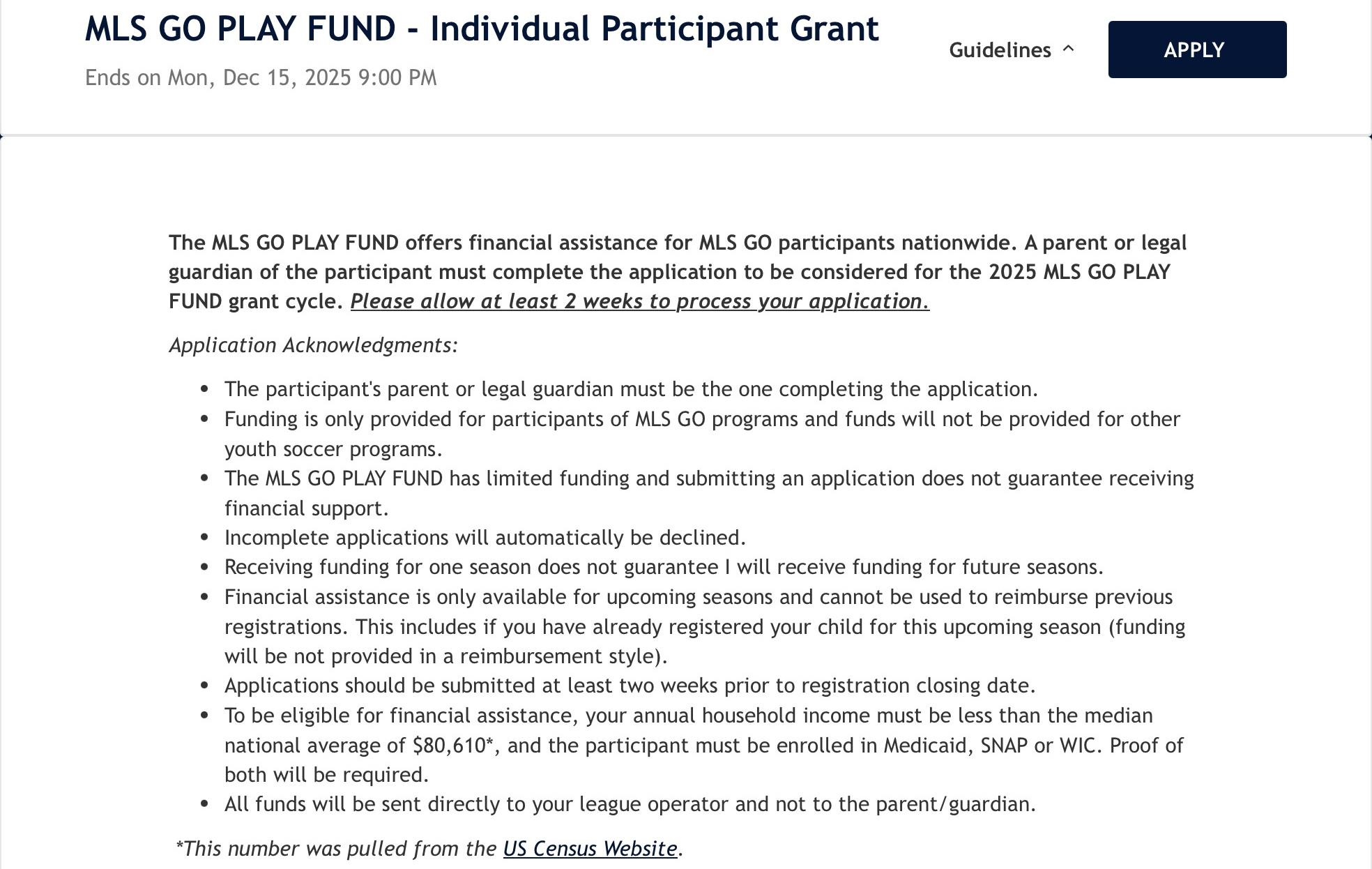 MLS GO, operated by RCX Sports, is Major League Soccer’s official recreational youth program, committed to delivering an inclusive, high-quality soccer experience for children ages 3-15. Designed to engage all participants – from first-time players to future pros – MLS GO emphasizes skill development and fostering a lifelong love of the game. By offering a structured, community-based program with connections to a developmental pathway, the league aims to break down barriers and make soccer accessible to all.